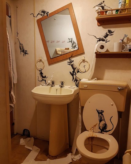 На картине Бэнкси изображены девять крыс, устроивших беспорядок в ванной комнате.