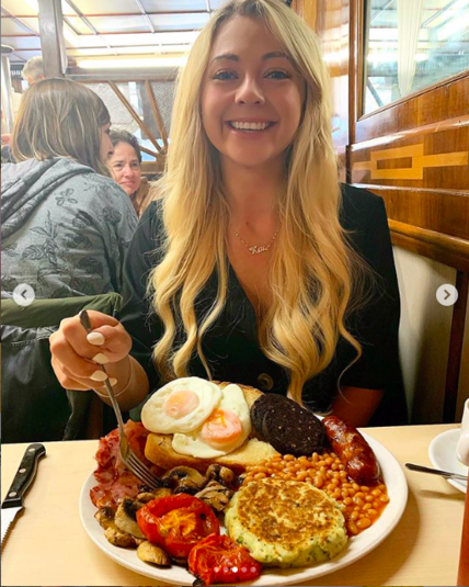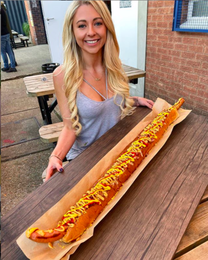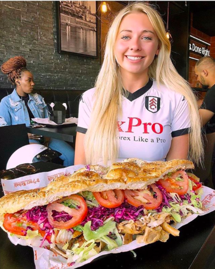 Милая красавица-блондинка довольно часто участвует в фуд-марафонах и съедает огромное количество еды на скорость. При этом британка может похвастаться отличной фигурой, которая приводит в восторг ее поклонников
