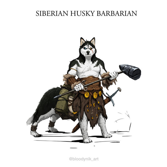 Художник Никита Орлов создал уникальные образы собак - варвар, лучник, зомби, инквизитор
