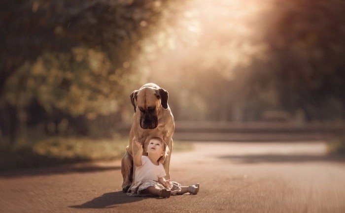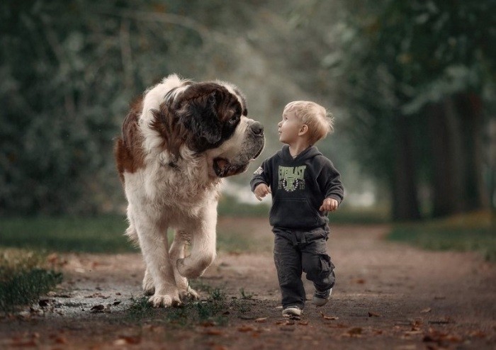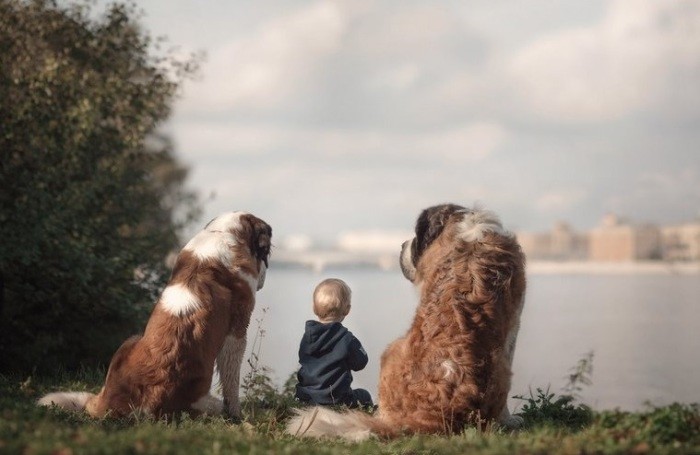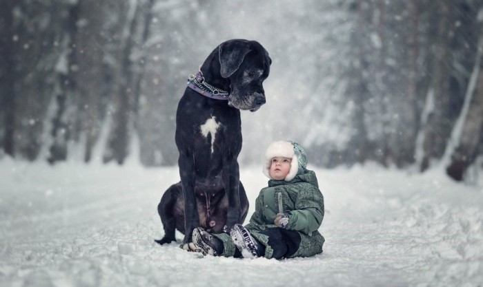 Большие собаки и маленькие дети: 30 трогательных фотографий малышей и их четвероногих друзей