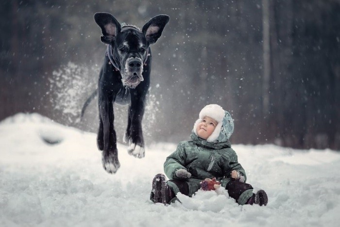 В этом обзоре подборка фотографий маленьких (и не очень) детей с большими (и очень большими) собаками.