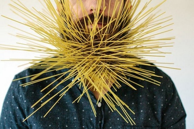 Пирс Тиот придумал необычный проект, в котором на спор совершает с собственной бородой необычные эксперименты: «начиняет» ее долларами, розами, спагетти и зонтиками для коктейлей, игрушками и ватными палочками, конфетами и даже горящими спичками