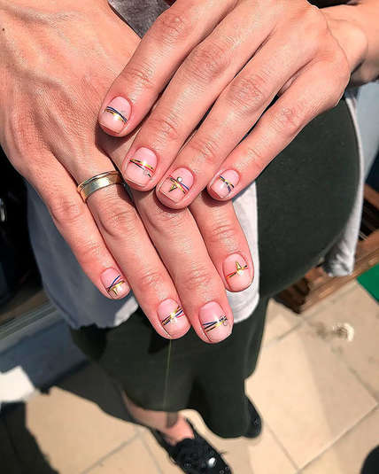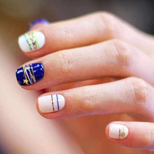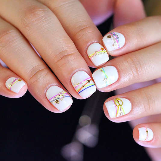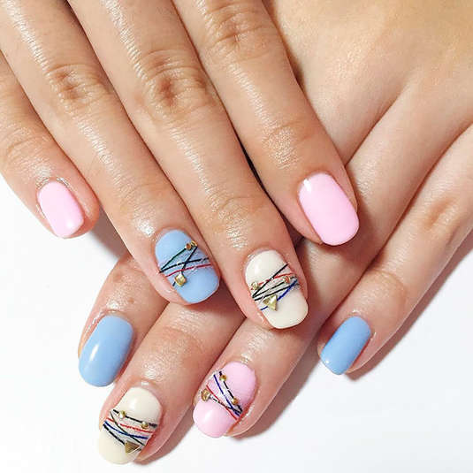 Конечно же, этот тренд пришел к нам из Кореи. Nail-мастер Ян Кунг Парк из Сеула вдохновилась «браслетами дружбы» и подумала, почему бы не сделать такие же рисунки на ногтях. Выглядит маникюр, как будто ногти украшены разноцветными нитками и стразами. Когда, как не летом такое носить?!