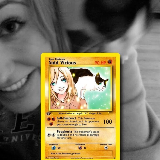 Бразильская художница Стефани Паркус делает карты покемонов на домашних любимцев