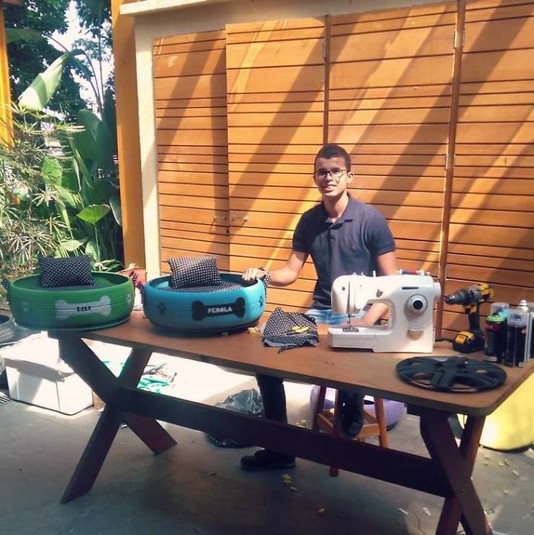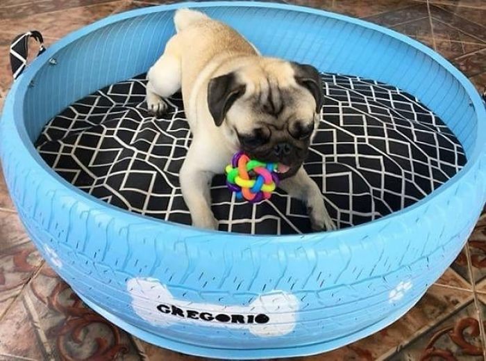 Перед тем, как создать очередное изделие, молодой человек сначала шины сортирует, после он их разрезает, моет и красит. Каждой покрышке он старается дать свой уникальный рисунок, а также написать на ней имя животного, для которого эта самодельная лежанка и была изготовлена.