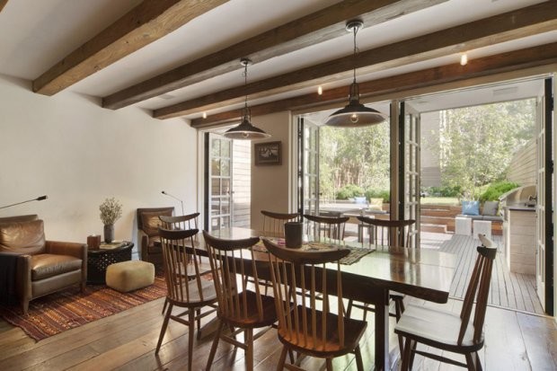 Также есть версия, что в доме находится 6 спальных комнат. На первом этаже поместья — гостиная с деревянным полом и «умным» камином. Дизайнерская мебель стильно и лаконично дополняет интерьер комнаты. Есть в доме и небольшая библиотека, рабочий кабинет и просторная кухня.
