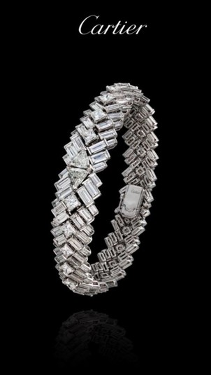 Сама тиара сделана из бриллиантов и платины, как гибкая полоса из одиннадцати секций, которые декорированы чередующимися овалами и паве с большими и маленькими бриллиантами.