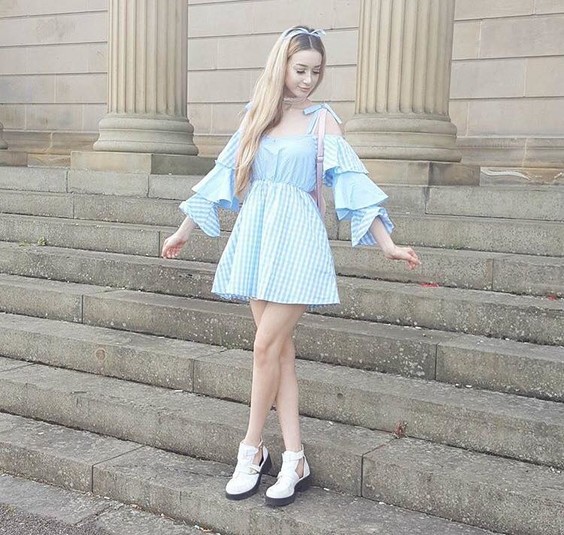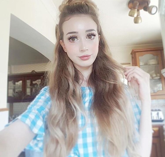 Природа наградила Ханну Грегори пропорциями настоящей куклы: талия 55 см, большие глаза и милое лицо. Девушке оставалось лишь дополнить свой образ контактными линзами, макияжем и соответствующими нарядами.