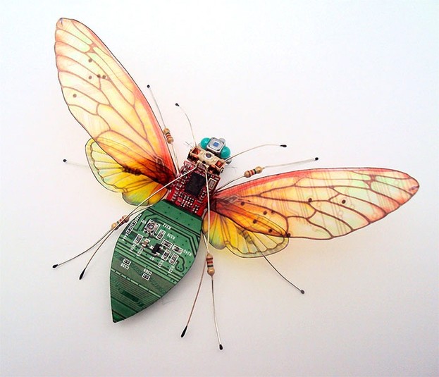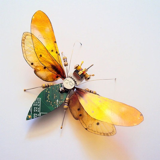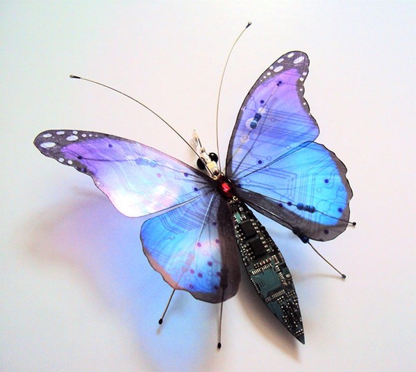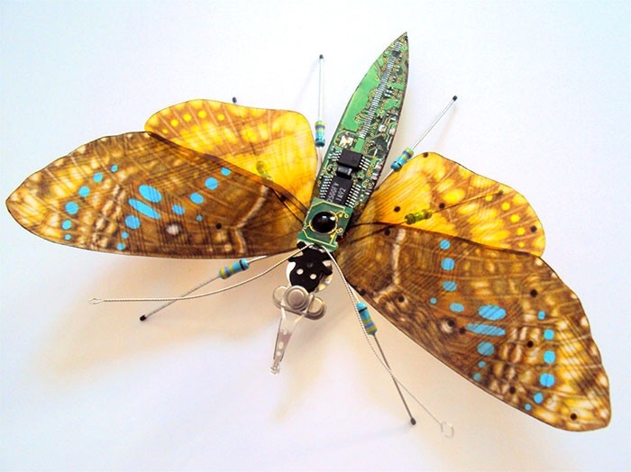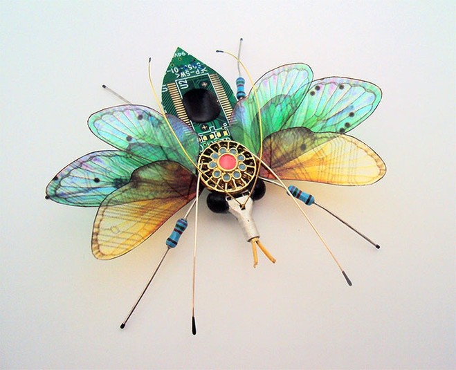 Джули собирает разные проволоки, кнопки и платы, а затем создает насекомых. Ее компьютерные бабочки очень необычно выглядят. В них есть своя изюминка и оригинальность.