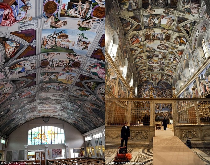 Священник Гари Беванс, посетив знаменитую капеллу в Ватикане, так вдохновился, что решил воссоздать шедевр Микеланджело в своей церкви, в полтора раза меньшей по размеру.