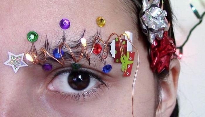 Красавицы с фантазией могут сделать из бровей настоящие елочки, уложив их с помощью лака. А украсить можете по своему вкусу.