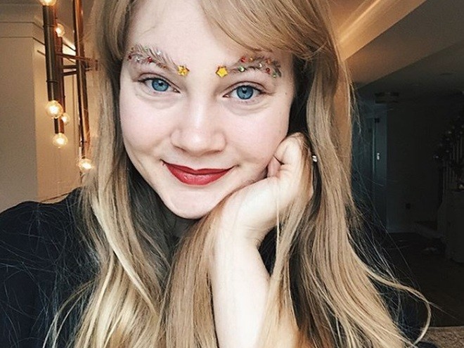 Для тех же, кто не привык или не хочет тратить много времени на украшение бровей, есть и менее затратные варианты. Новогодние брови можно оформить и с помощью обычных разноцветных блесток, наложив их сверху.