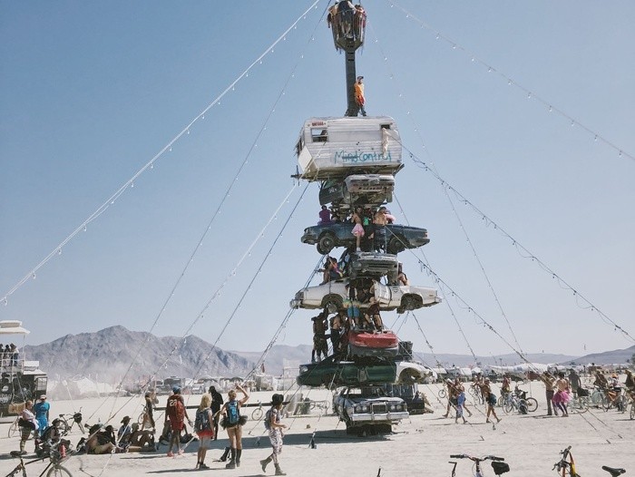 Арт-объект Night At The Climb In, напоминающий башню из автомобилей и получивший негласное название «машинный кебаб», пришлось закрыть после того, как один из участников фестиваля по неосторожности с него свалился.