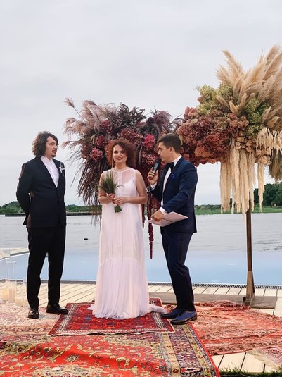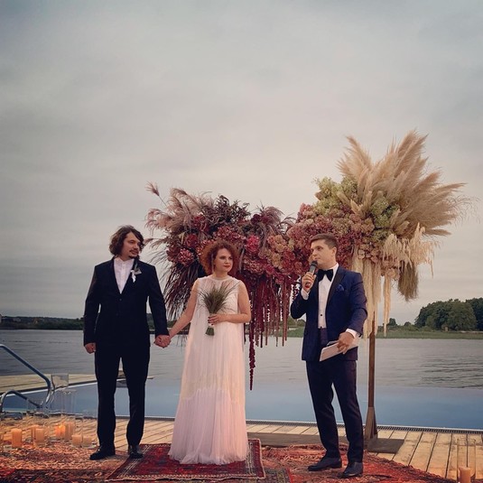 Свадьба состоялась в Загородном комплексе на берегу Днепра под Киевом. На праздновании присутствовали, в том числе, Анатолий Анатолич, Василиса Фролова, Матвей Ганапольский и Василий Голованов.
