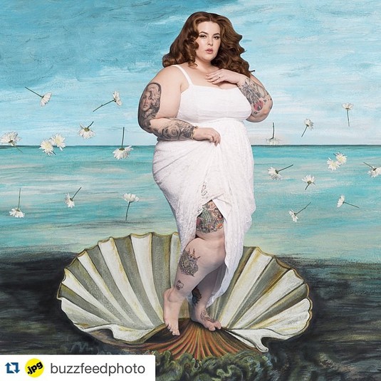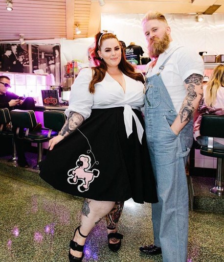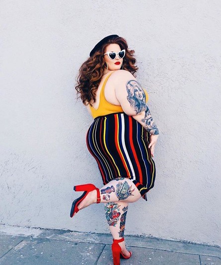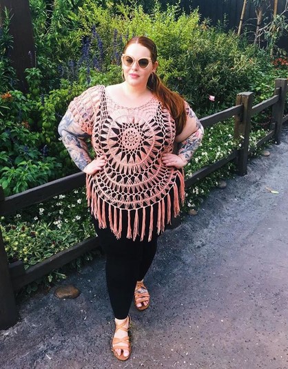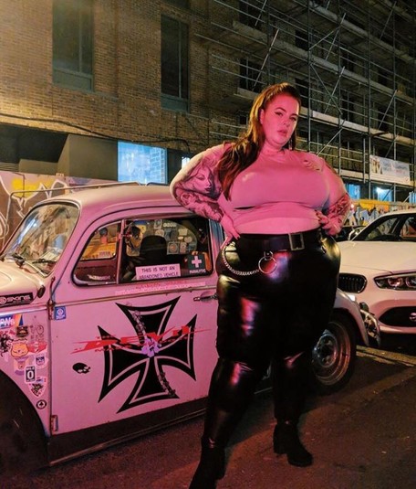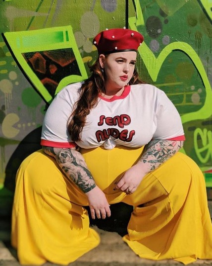 Еще одна модель plus-size — американка Тесс Холлидей, которая, как и Грэм, предпочитает не скрывать формы, а демонстрировать их. Тесс любит декольте, мини и, конечно же, высокие каблуки. Тесс несколько крупнее своих коллег, что не помешало ей получить контракты с Benefit, SimplyBe и Yours Clothing.