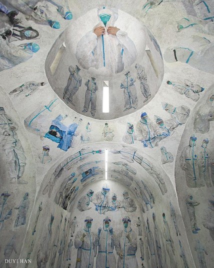 Китайский дизайнер Дуи Хань расписал церковь в городе Ухань, с которого началась вспышка нового штамма коронавируса, на тему болезни. Стеныи потолки он превратил в большую фреску.