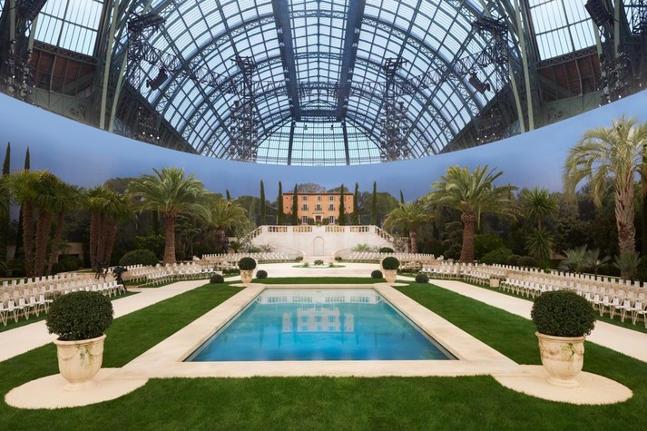 Гран-Пале – площадка, которая позволяет Карлу Лагерфельду воплощать в жизнь любые свои фантазии. И он ее использует по максимуму. Новое кутюрное шоу Chanel он задумал красочным и жизнерадостным, а вместо подиума построил виллу Chanel, вдоль которой и дефилировали модели.