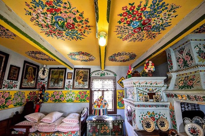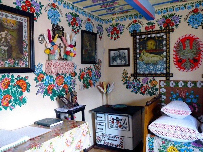 Так как же началась эта традиция в Залипье (Zalipie). На самом деле, достоверных фактов не существует, однако самая достоверная версия гласит, что местные женщины стали расписывать свои дома изнутри из-за плохой вентиляции дома, когда сажа от печей оседала на потолках и стенах. Такие пятна выглядели неопрятно даже если их отмыть, и чтобы закрасить подобные изъяны, женщины рисовали самые простые рисунки - цветы.