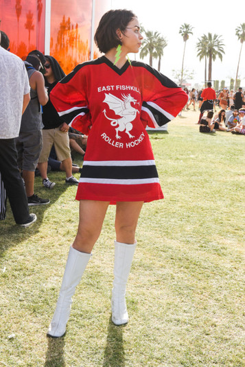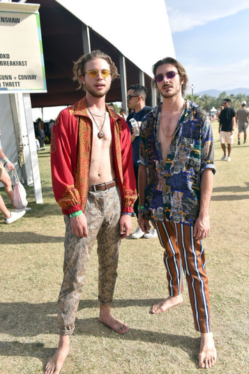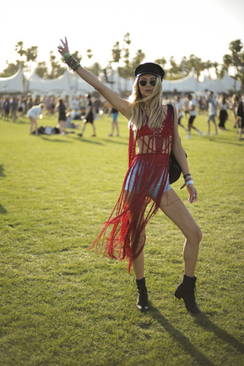 Негласный дресс-код гостей фестиваля имеет свои характерные черты: любителям Coachella близка эстетика богемного шика. Он являет собой сочетание стиля хиппи, этники и фольклора с роскошными аксессуарами. Такие элементы, как бахрома, пэчворк, деним, флористический принт и кружева гости фестиваля комбинируют с сапогами Louis Vuitton, кепками украинского бренда Ruslan Baginskiy и сумками Moschino.