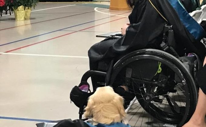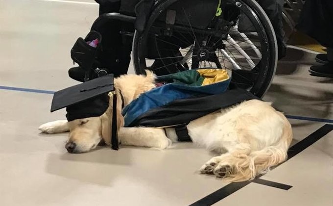 Золотистый ретривер по кличке Гриффин посещал занятия в университете вместе со своей владелицей и получил документ о его окончании