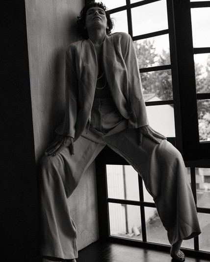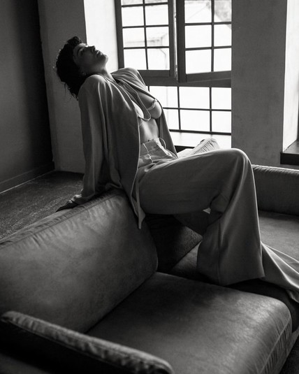 Даша Астафьева примерила штанний костюм без нижнего белья, поэтому все поклонники могли увидеть обнаженную грудь артистки. Еще большей пикантности снимкам добавляли черно-белые тона и эротические позы.