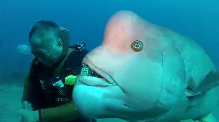 Конечно, Хироюки и Ёрико не могут общаться словами, но между ними действительно есть определенная связь. Рыба позволяет человеку не только приближаться к ней, но и гладить себя, и даже целовать. Такое можно было бы ожидать от домашнего животного, но когда себя ведет так рыба в океане - это действительно изумляет.