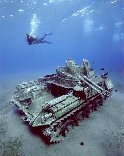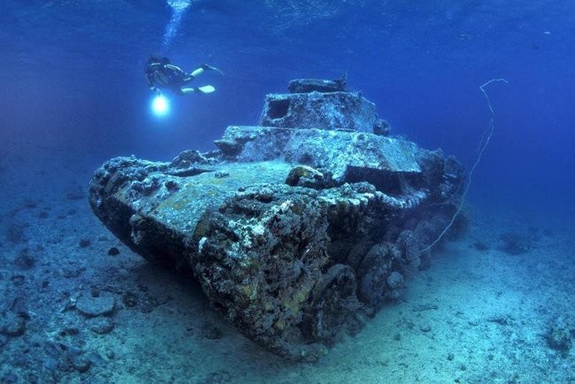 Дайверы показали фото военной техники, которая лежит на дне морей и океанов. На снимках можно увидеть самолеты, танки и корабли времен Второй мировой войны.