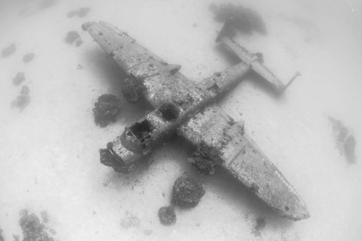 Среди фотографий – обломки самолета «Летучая крепость» B-17, сбитого в годы Второй мировой войны. Сейчас он лежит в водах Хорватии.