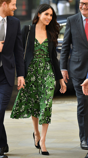 Меган предпочитает элегантный стиль, поэтому увидеть ее в мини практически невозможно, она любит длину миди. К примеру, она часто выбирает платья классического силуэта, лаконичные, с интересным принтом.