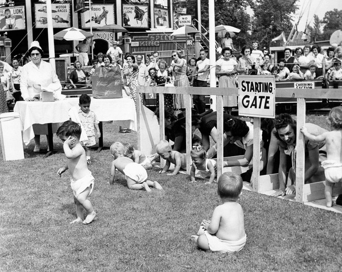 Дерби в подгузниках: как проходили ретрогонки ползающих малышей