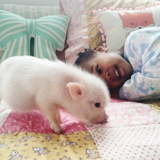 Девочка подружилась с маленьким поросенком: трогательные фото