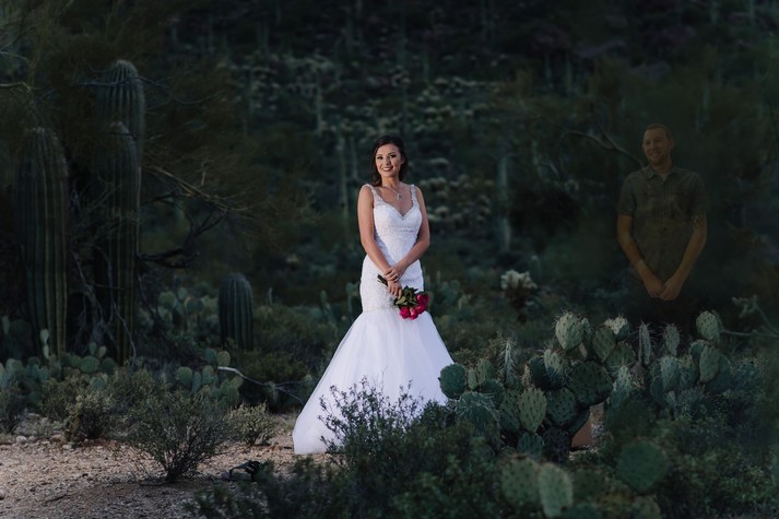 На снимках фотограф с помощью графического редактора специально поместила силуэт Рэнди рядом с Дебби, которая улыбалась в подвенечном платье и с букетом цветов в руках. Кадры впечатлили пользователи Сети, и многие назвали идею девушки самой грустной свадебной фотосессией.