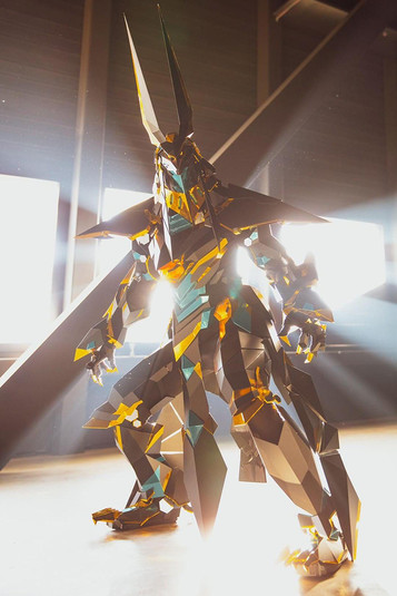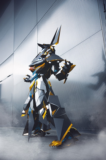 «Данный персонаж — это статуя, которую я нашла в Сети, созданная Хуэй Цзоу (Hui Zou) и построенная студией R-one. Я сразу влюбилась в дизайн и спросила у художника, могу ли я сделать косплей, основанный на ней. Моя идея состояла в том, чтобы сделать собственную низкополигональную версию персонажа, и он согласился. Низкополигональная означает, что я хотела, чтобы костюм выглядел цифровым и искусственным, а не реалистичным, как будто бы ожила ранняя стилизованная 3D компьютерная графика. Поэтому я начала создавать свои собственные шаблоны в Blender, 3D-программе», — рассказала Мартина.