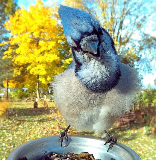 Решив познакомиться с пернатыми обитателями поближе, она установила кормушку с фотокамерой у себя на заднем дворе и стала прикармливать обитающих по близости птиц.