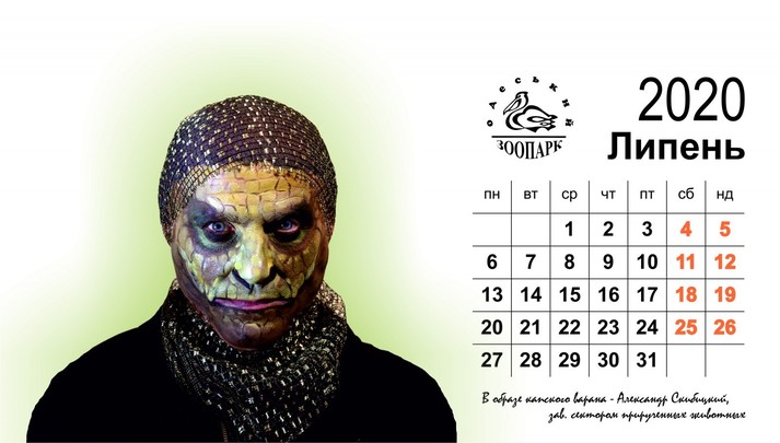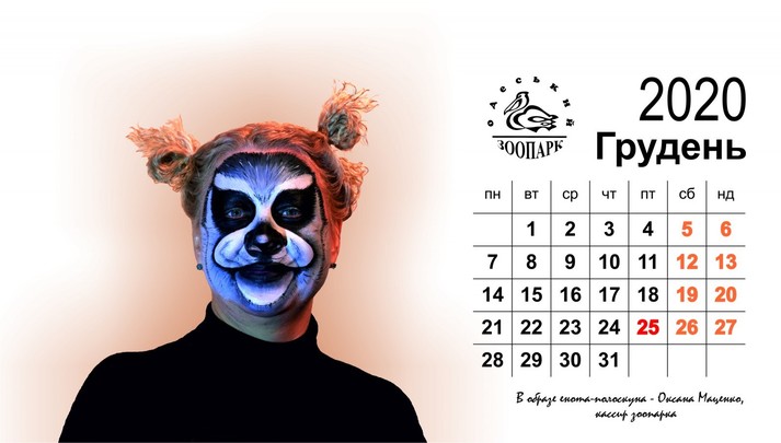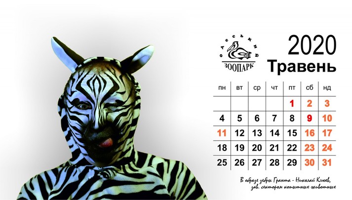Так, Игорь Беляков, который «открывает» календарь, предстал в образе козла, завсектором копытных животных Николай Клюев - образе зебры Гранта, кассир зоопарка Оксана Мащенко - енота-полоскуна.