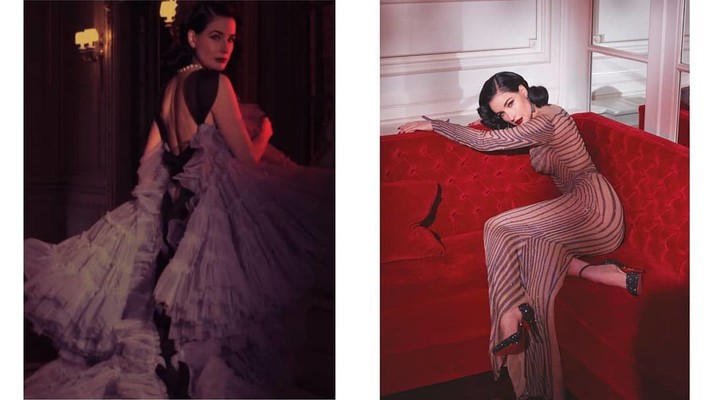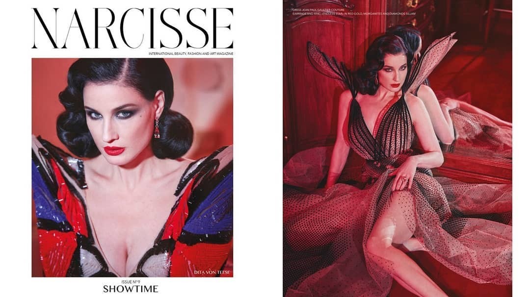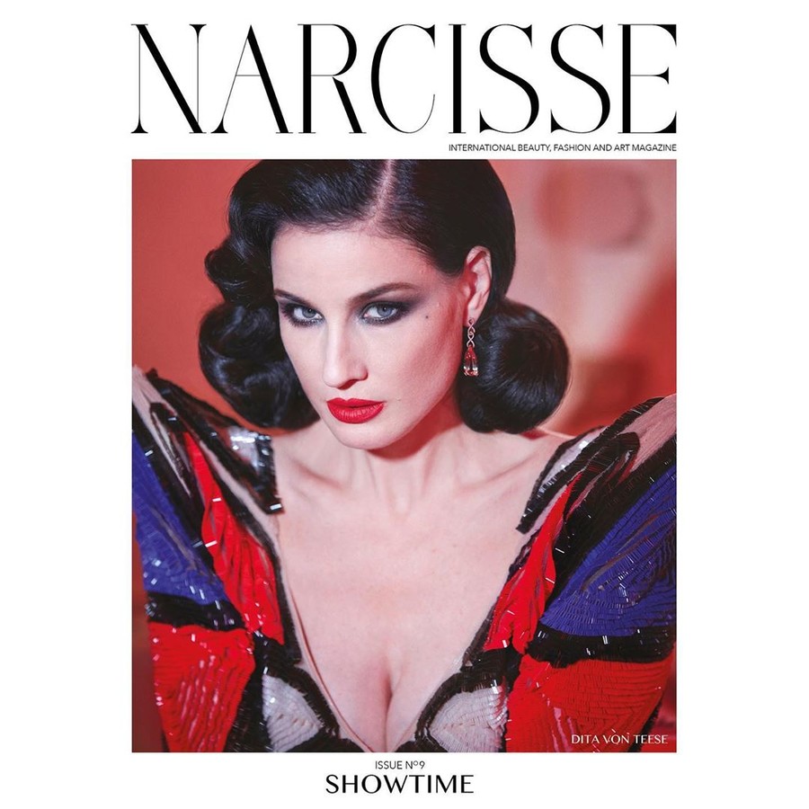 Тема нового номера журнала — Showtime. Над съемкой для журнала работал фотограф Грег Сволс. На коротких тизерах, опубликованных в инстаграме Диты и Narcisse, модель появляется в привычном для себя образе соблазнительной дивы. Чулки, вуаль, драгоценности — образ, в котором мы привыкли видеть королеву бурлеска.