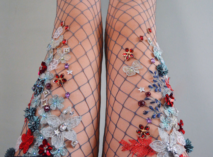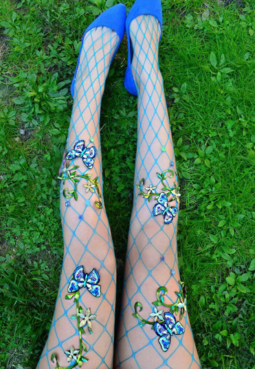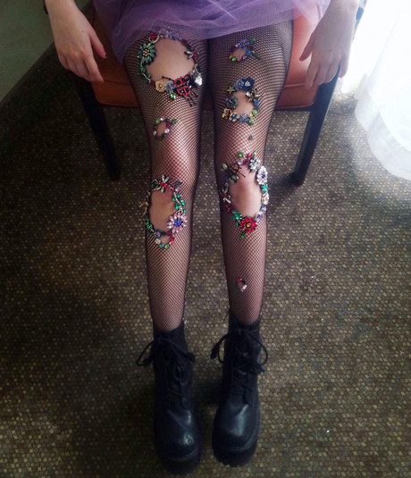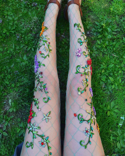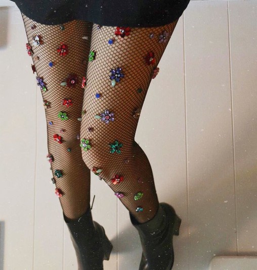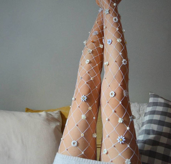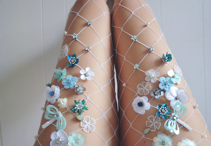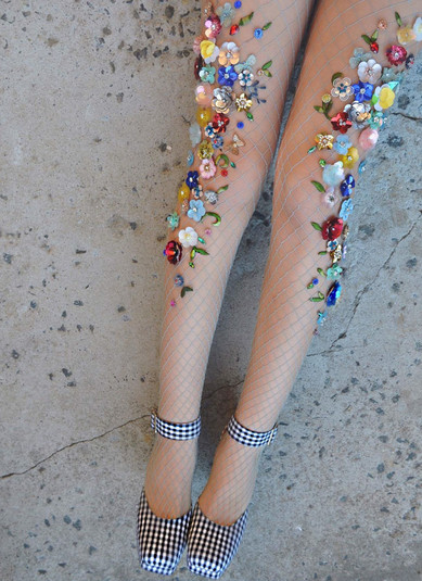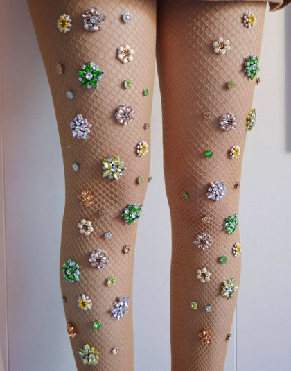 Дизайнер из Нью-Йорка Лирика Матоши создала серию женских колготок, которые украшены цветами, стразами, стеклянными камушками и прочим элементами декора. Каждая работа выполняется в единственном экземпляре, пишет «Главком».