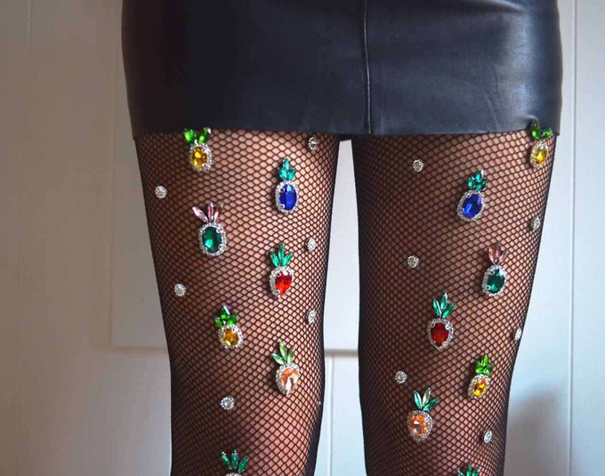 Обычно Лирика Матоши использует для работы над этими нарядами бижутерию. Однако в отдельных случаях она покрывает колготки более дорогими материалами, отчего их цена сразу же вырастает в несколько раз.