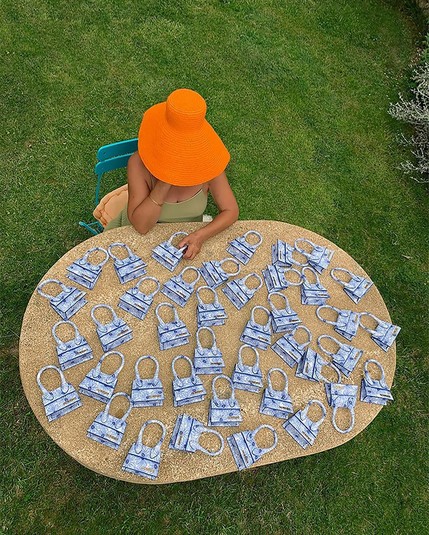 Кроме того, Лилин запечатлели в оранжевой соломенной шляпе рядом со столом, где находятся фирменные крошечные сумки Jacquemus. Она также продемонстрировала и другие модели сумок из различных материалов, в том числе кожаные, резиновые и соломенные.