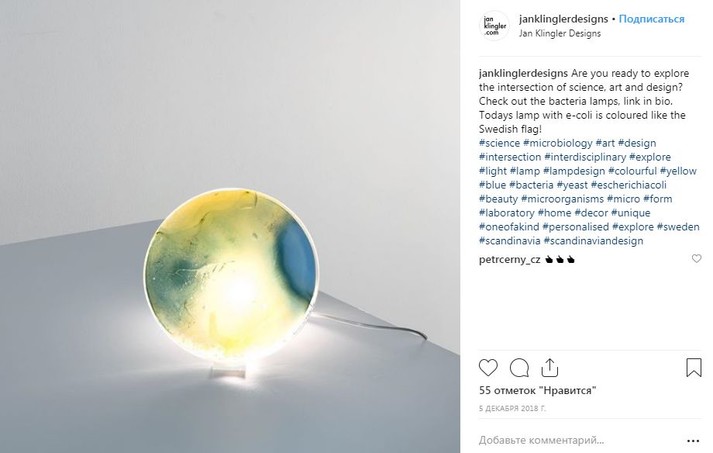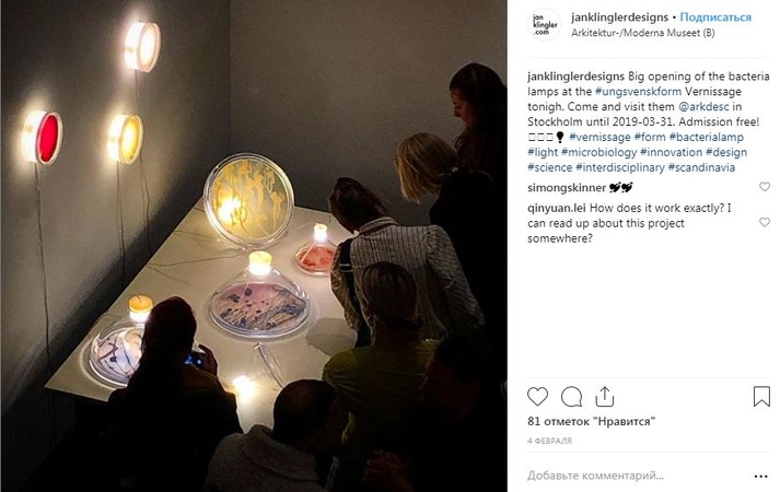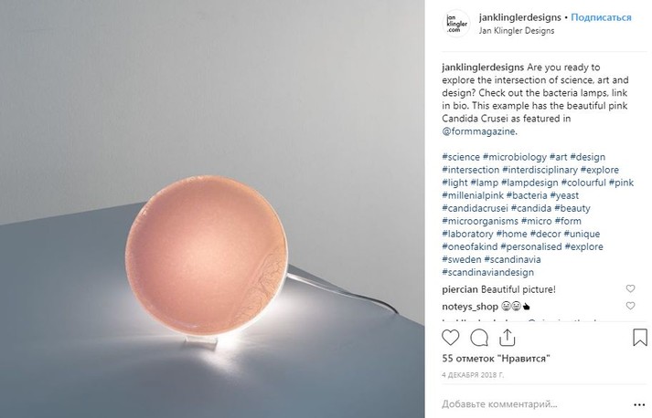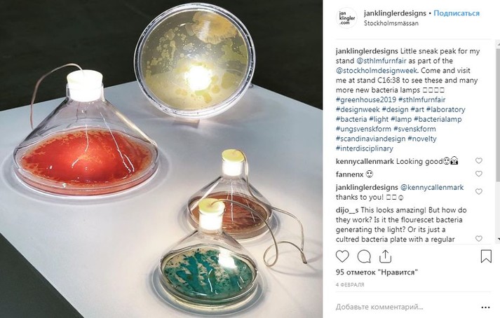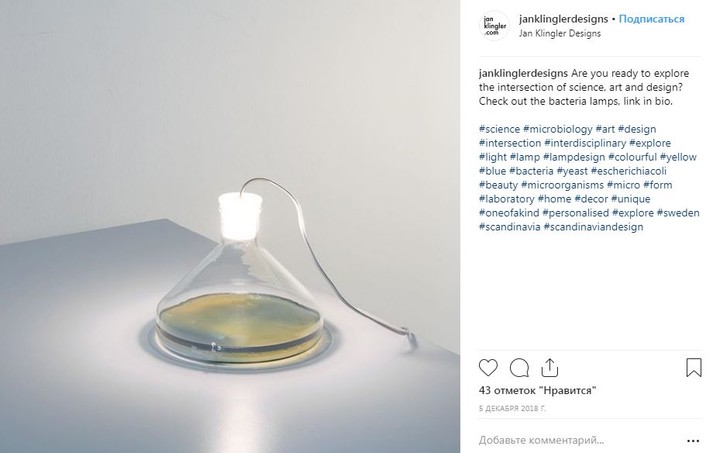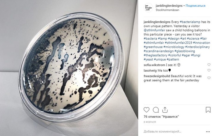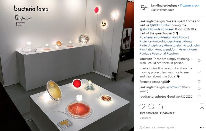 Ян Клинглер сотрудничал с микробиологом в университетской больнице Стокгольма, чтобы создать проект на стыке промышленного дизайна и биологии