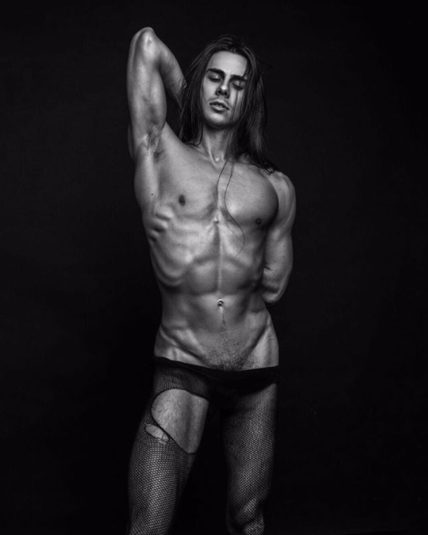 На фото Грицфельдт позирует практически без одежды в вызывающей позе. При этом на дизайнере надеты рваные колготки в сетку.