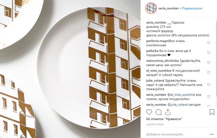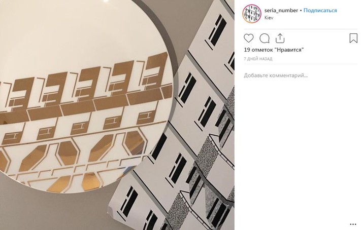 Дизайнер Елена Орап вместе с командой разработала серию декоративных тарелок, вдохновленных урбанистическим пейзажем спальных районов Киева. Проект называется «Серия». На тарелках изображены панельные дома и многоэтажки.