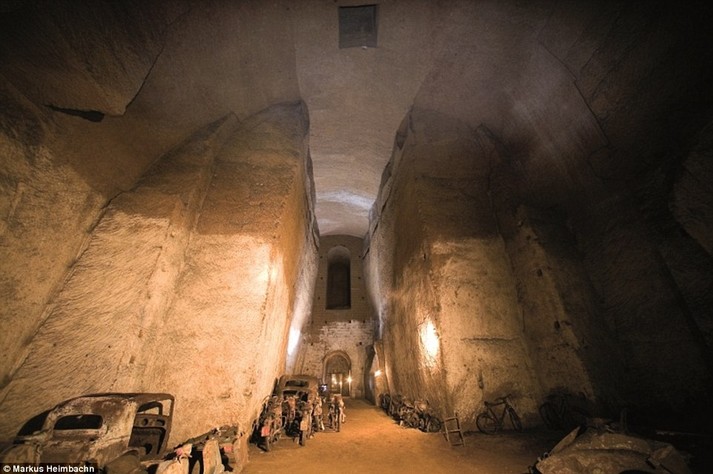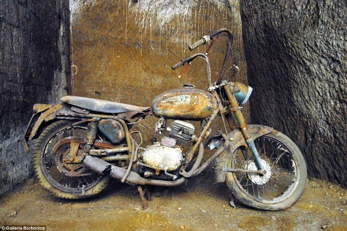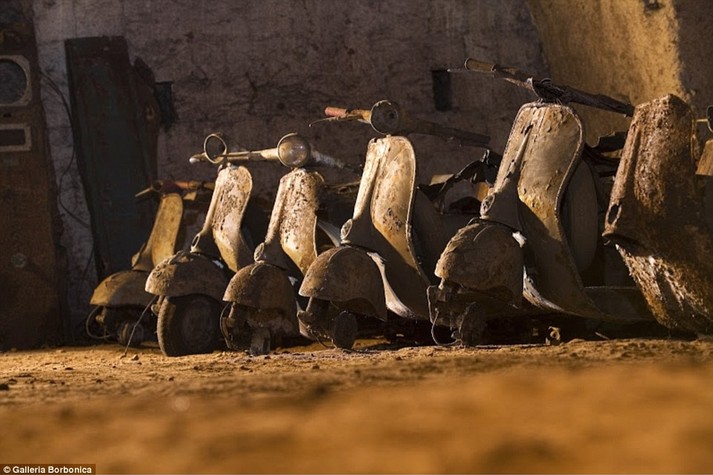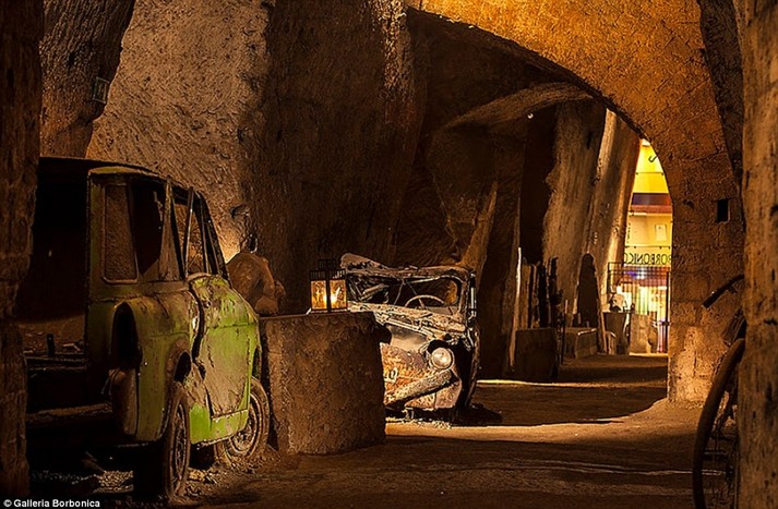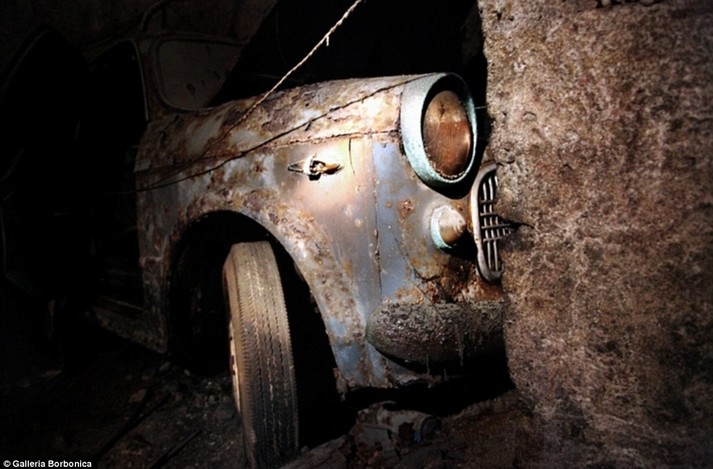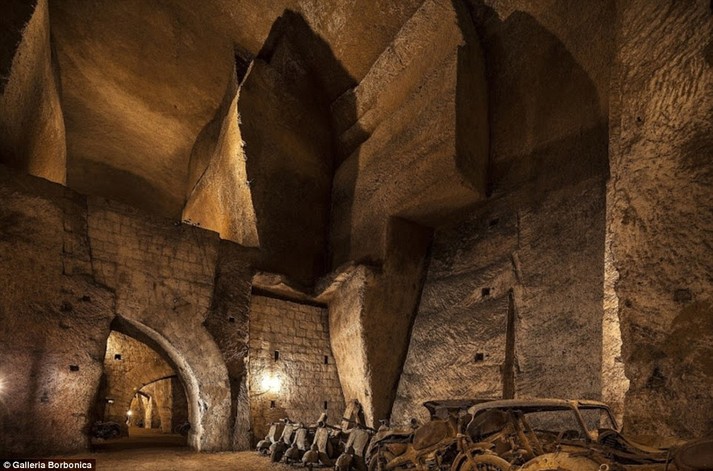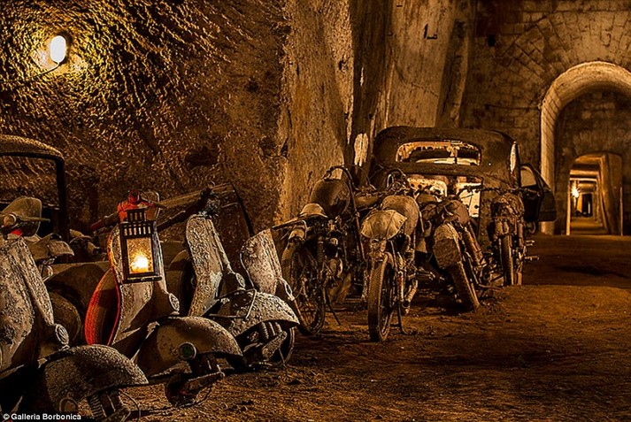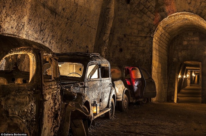 В заброшенных подземных ходах под Неаполем, которые были построены в 19-м столетии королём Фердинандом II на месте старых акведуков, чудом сохранились винтажные автомобили и мотороллеры, помещённые туда в 1940-1960-х годах.