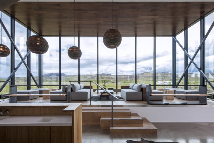Природные геотермальные источники обеспечивают в отеле круглогодичное отопление и горячую воду. Наличие широких окон в каждом из номеров отеля уменьшает потребность в искусственном освещении и, обеспечивая при этом прекрасный вид на суровый пейзаж острова.