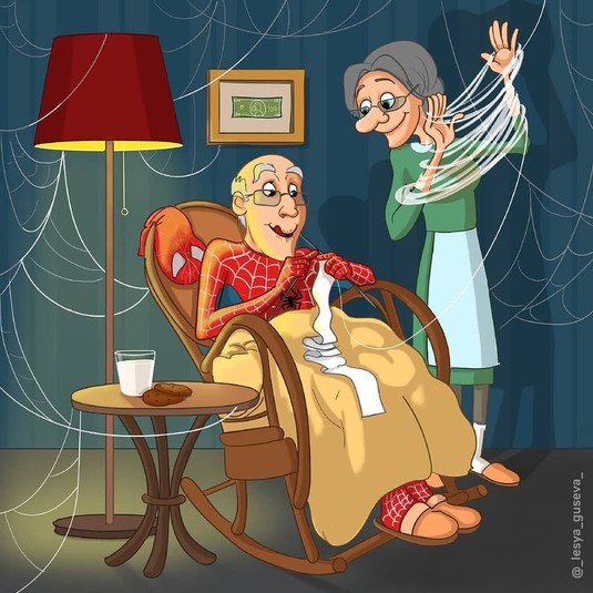 Художница Леся Гусева на своей странице в Instagram опубликовала серию забавных рисунков, на которых изображены супергерои и суперзлодеи, вышедшие на пенсию.