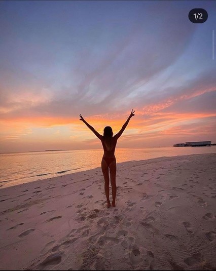 Недавно красотка отправилась отдыхать на солнечные Мальдивы, откуда теперь частенько выкладывает фото, демонстрируя идеальную фигуру и длинные ноги.