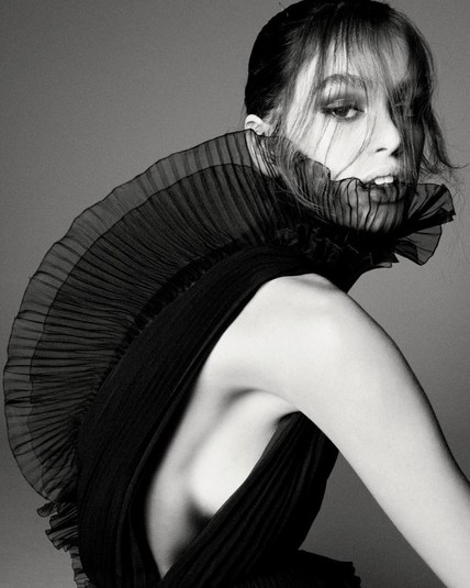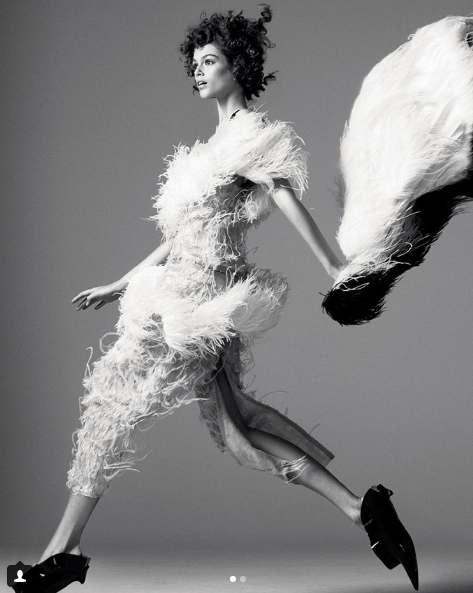 Молодая модель в последнее время часто появляется на страницах прославленных глянцев. Например, недавно она стала музой французского Vogue.
