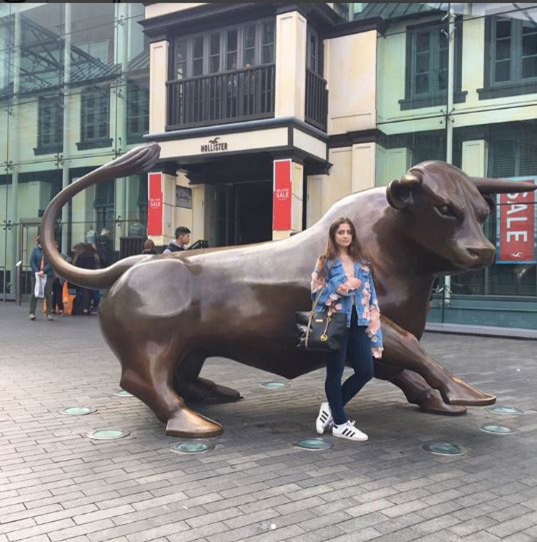 Девушка посетила шопинг-молл Bull Ring, символом которого является металлический бык.