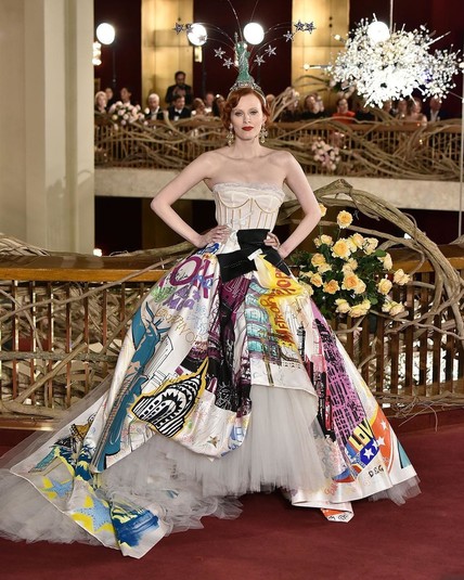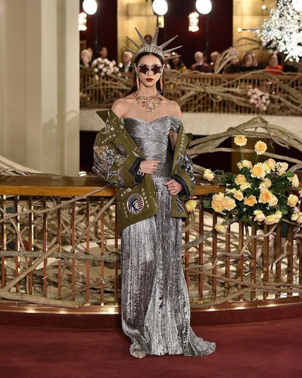 «В новой кутюрной коллекции Доменико Дольче и Стефано Габбана удалось передать всю многогранность знаменитого мегаполиса: и роскошь Бродвея, и всю демократичность Манхэттена, и свободу улиц Бруклина. Так, поверх сверкающих платьев в пол были надеты парки, кимоно сочетались со спортивными брюками, а блестящие жакеты, и вовсе, с джинсами. В качестве принтов — пейзажи города и граффити, а вместо головных уборов — тиары с уменьшенной копией Empire State Building и звездами, как у Статуи Свободы», - пишет о мероприятии пресса.