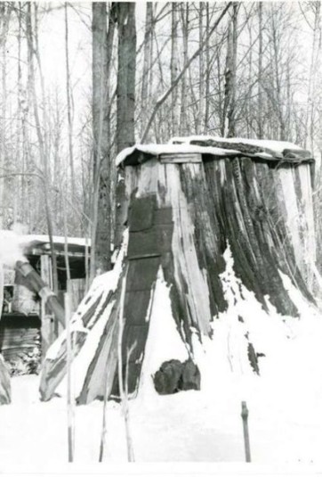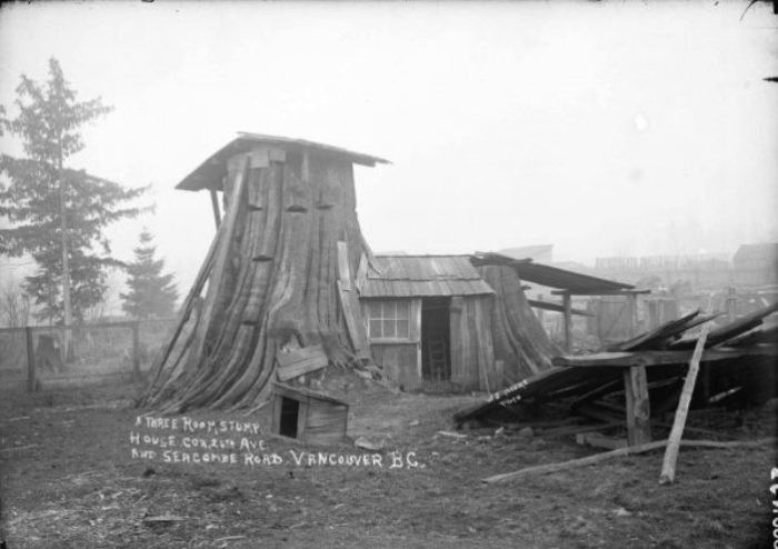 Люди самым неожиданным способом приспособили большие пни под свои нужды - они стали в них жить! Внутреннюю часть выдалбливали или выжигали, так что оставалась достаточная толщина стенок. Верх накрывали крышей. Предполагаемыми первопроходцами в выборе необычного жилища стала семья МакАллистеров, поселившаяся в доме из пня в 1847 году. В дальнейшем они смастерили себе традиционное жилье, а «обжитый» пень стали использовали как сарай. Там они прятали кур и скот от медведей, рысей и енотов.